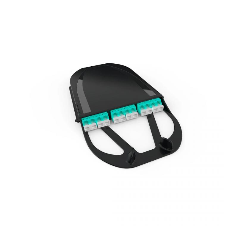 Com configuração Tipo B direto, o cassete facilita migrações e ampliações de rede, mantendo padronização e alinhamento com soluções MPO/MTP. A cor acqua identifica rapidamente o padrão OM4, contribuindo para uma gestão visual clara e profissional das fibras.
