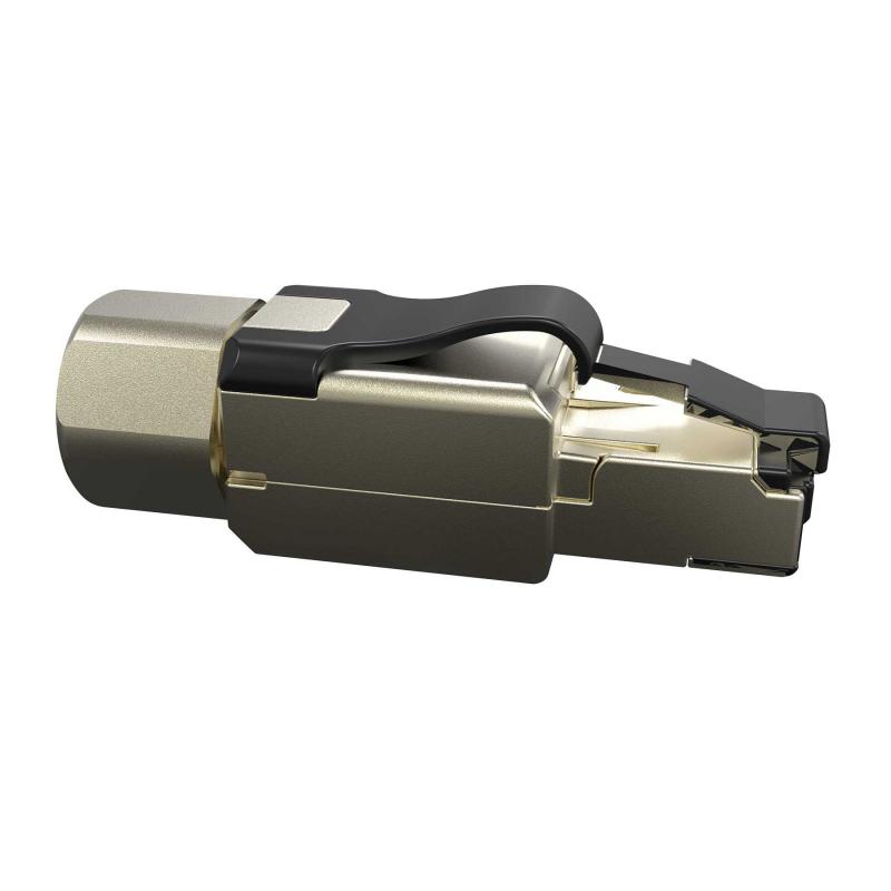 Conector RJ45 macho para uso em redes de cabeamento estruturado industrial onde é necessário a conectorização em campo. Deve ser utilizado em  instalações onde não é possivel a utilização da extensão convencional, montada