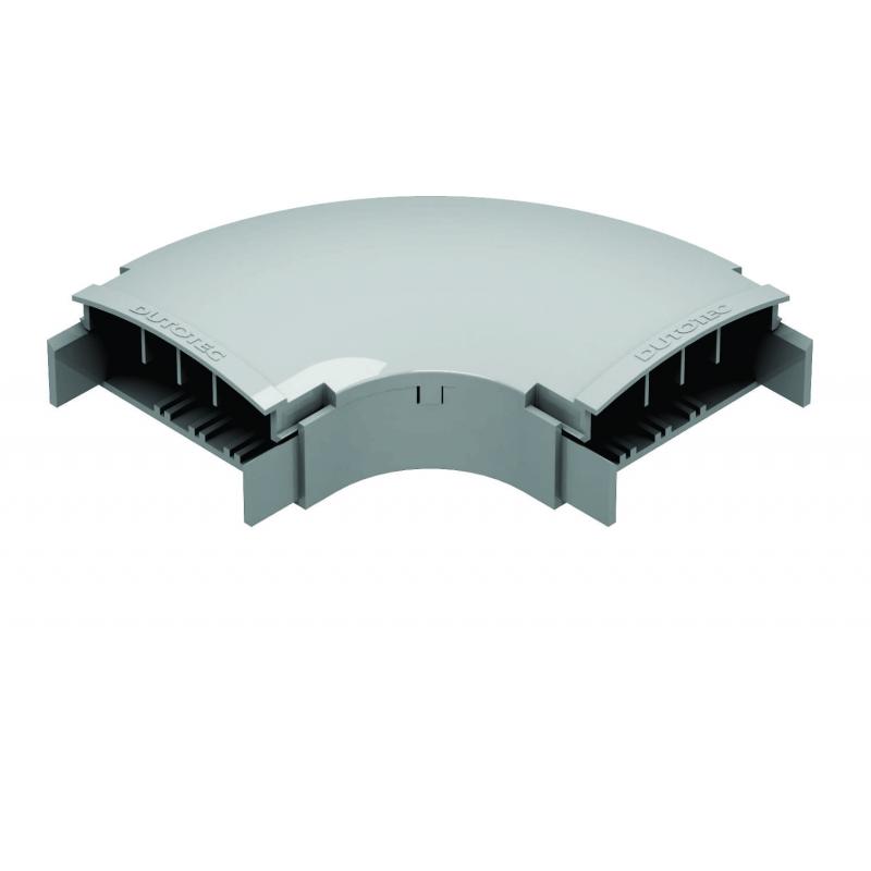 Fabricadas em alumínio injetado sob pressão. Compostas de base e tampa. Acabamento das tampas iguais às tampas das canaletas tornando a instalação mais requintada. A conexão da tampa com a base da curva se dá sob pressão. Para configurar internamente a curva é necessário a colocação dos septos móveis.(Vendidos separadamente com 3 unidades). Este modelo de curva garante uma curvatura em torno de 8 vezes o diâmetro de um cabo de telecomunicações. Embalagem:4 peças.