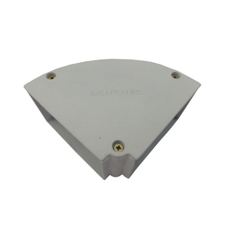 A curva para instalações aparentes é fabricada em alumínio injetado, composta por duas partes fundamentais: a base e a tampa. Essa construção bipartida facilita a passagem dos cabos elétricos e permite a instalação após a conclusão da infraestrutura. Destaca-se pela presença de septos internos móveis, conferindo flexibilidade de configuração para organizar e direcionar os cabos conforme as necessidades da instalação.