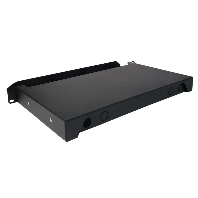• Kit Bandeja de Emenda 12F: Responsável por acomodar e proteger as emendas ópticas e o excesso de fibra. Composto por uma bandeja de emenda para até 12/24 fibras fabricada em plástico de alto impacto UL-94 V0.