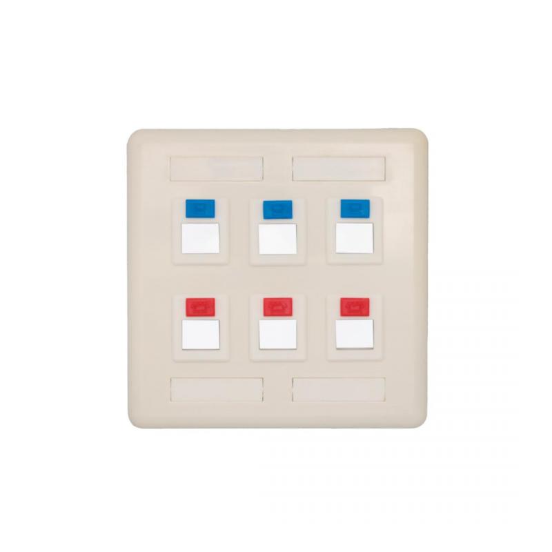O Espelho Plástico 4x4 com 6 colares da D-NET é a escolha ideal para instalações de rede estruturada que exigem alta densidade de conexões com um acabamento organizado e discreto.