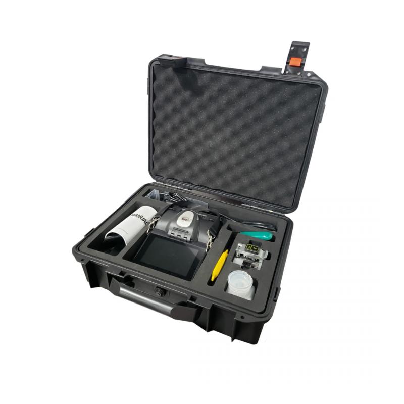 O kit é completo e acompanha maleta de transporte, clivador, alicate para cabo drop, alicate tight loose, fonte de alimentação, frasco para álcool, pincel, fibra para calibração de arco, par de eletrodos extra, alças e manual do usuário. Além disso, conta com fonte de luz, Power Meter integrado, eletrodo reserva e assistência técnica nacional, garantindo suporte confiável. É a solução ideal para profissionais que necessitam de alto desempenho em fusões de fibra óptica com agilidade e precisão.