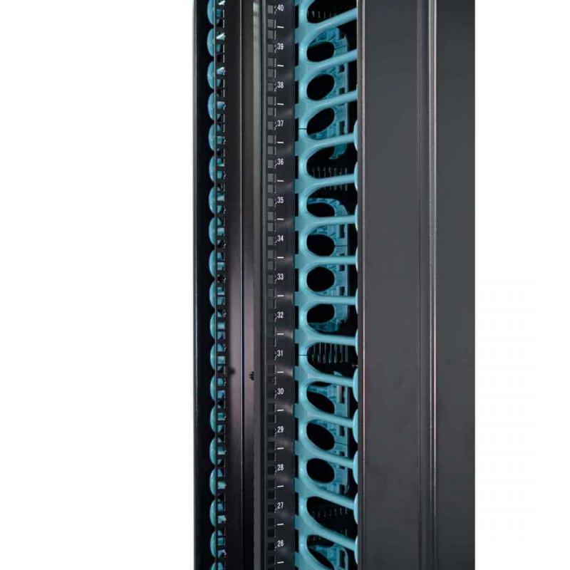 O Organizador de Cabos Vertical 45U x 150mm na cor preta é a solução ideal para manter a organização e o gerenciamento eficiente de cabos em racks abertos.