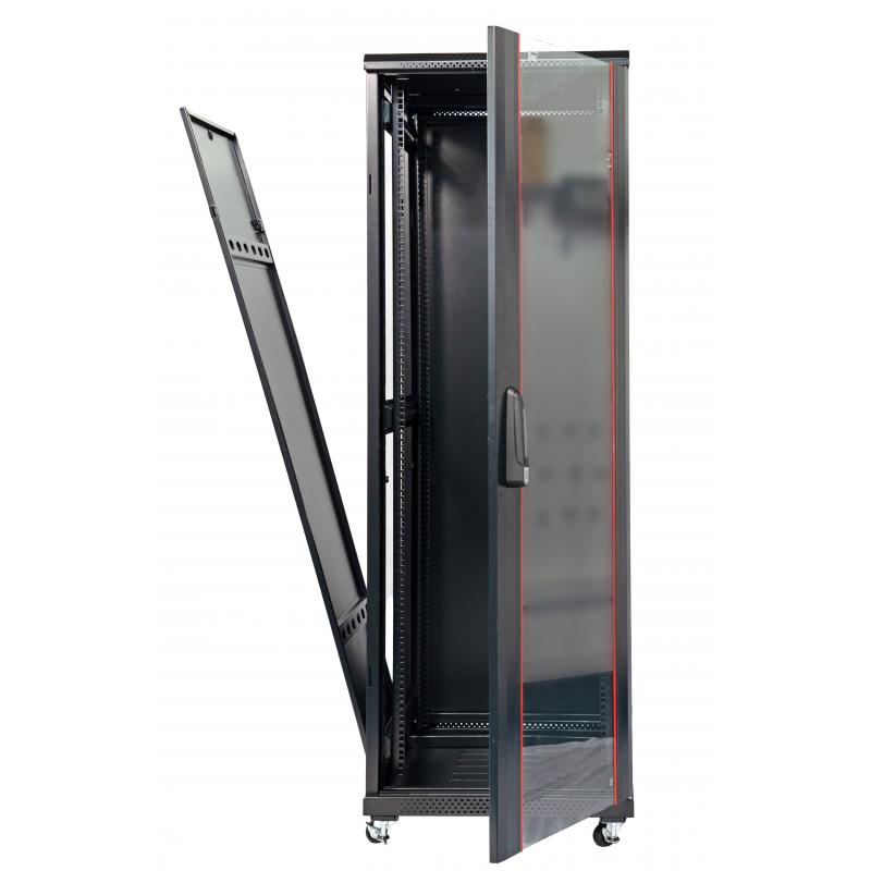 O Rack Servidor 19" desmontável 36U com porta de vidro oferece uma solução prática e segura para acomodação de equipamentos de TI. Com dimensões de 600 x 800mm, ele é fabricado em aço de alta resistência e recebe pintura eletrostática preta, garantindo durabilidade e proteção contra corrosão.