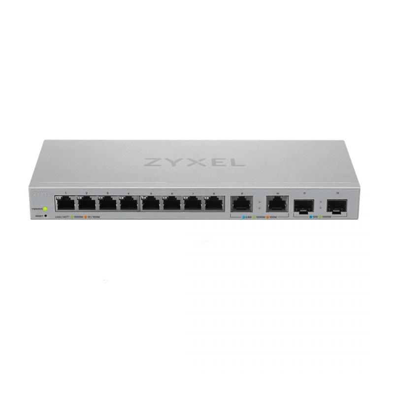 O Zyxel XGS1210-12 é um switch com duas portas de uplink SFP+ de 10 Gigabits, duas portas de 2,5 Gigabits e oito portas Ethernet Gigabit. Com sua interface Web GUI integrada, permite a priorização, limitação e proteção do tráfego na rede, tornando-o ideal para clientes que buscam um gerenciamento simples de rede para casa ou escritório. As portas de 2,5 Gigabits permitem conexões rápidas com pontos de acesso 802.11ac ou 802.11ax para melhorar a entrega de velocidade sem fio. Além disso, com as portas de 10 Gigabits SFP+, é possível transmitir dados rapidamente para dispositivos clientes a partir de um NAS ou outros componentes de rede central.
