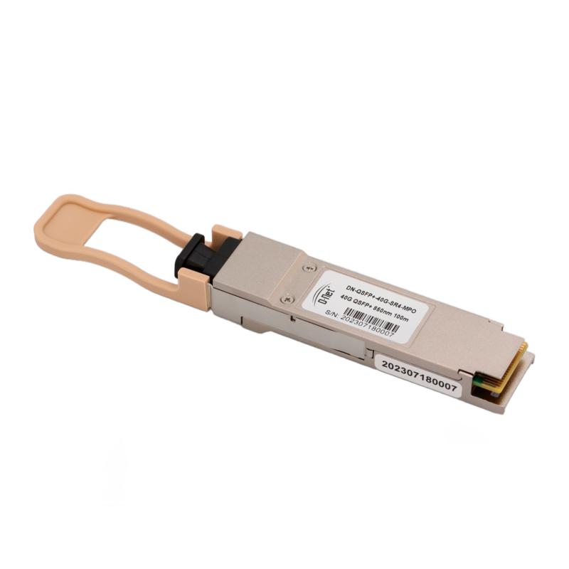 Este módulo é uma escolha ideal para comunicação de dados a 40G, graças ao seu baixo consumo de energia e excelente desempenho EMI, que permitem o design de sistemas com alta densidade de portas. Ele apresenta um formato compacto que integra um laser Fabry-Perot (FP) de 850nm em um pacote MPO, junto com um receptor linear PIN multimodo, permitindo a transmissão de dados em uma distância de até 300m.